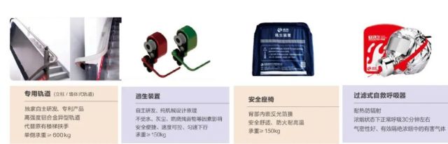 该系统分为逃生设施和智联系统两部分,通过人防+物防+技防的手段,形成立体化安全防控体系,解决城市高层建筑应急自救逃生面临的重大难题。